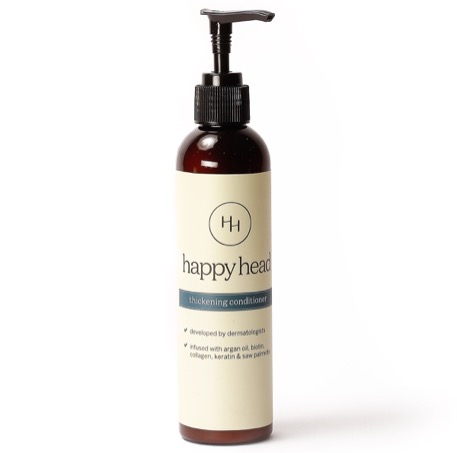 Introducing Happy Head’s new Thickening Conditioner–our unique blend of ingredients designed to strengthen, protect, and promote healthier hair. Created by dermatologists and hair loss experts, our Thickening Conditioner features carefully curated ingredients such as argan oil, biotin, collagen, keratin, and saw palmetto to help tackle the effects of hair loss and leave your hair feeling moisturized.  Sulfate, paraben & cruelty free.